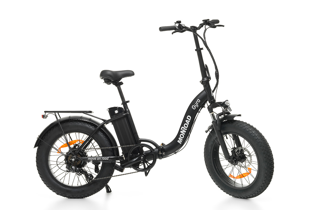 Telaio in alluminio di colore nero, Motor Brushless, Display LCD, Cambio Shimano Tectro 7 marce, Pneumatici 20×4″, Cerchi a raggi, Freni a Disco.